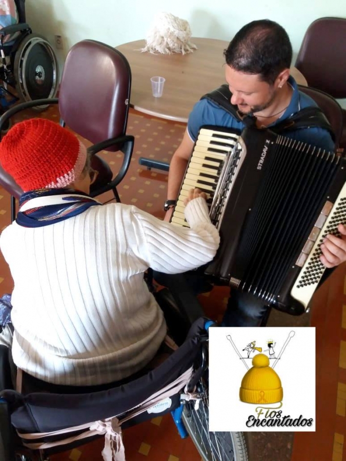 E para animar a tarde, nada melhor do que a boa música, que foi levada ao lar através do sanfoneiro Maurício Marson. Ele tocou alguns clássicos do baião e da música nordestina e alguns idosos até arriscaram alguns passos. Mesmo os que fazem uso de cadeira de rodas participaram da alegria, pois foram levados ao centro do salão pelas funcionárias e por voluntários e entraram no ritmo. Outros foram sozinhos,. empurrando a cadeira ou o andador. Muita conversa e música boa e a oportunidade de eles contarem um pouquinho do que já viveram e do que sabem sobre a vida. Foram monentos gratificantes, de amor e de aprendizado para todos que participaram.